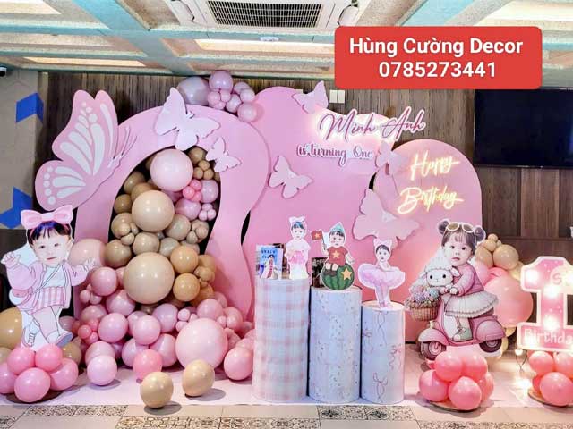 Hùng Cường Décor với hơn 7 năm kinh nghiệm thi công hàng trăm tiệc thôi nôi, sinh nhật, đầy tháng, tiệc cưới, tất niên, trung thu, khai giảng, bế giảng năm học, noel, tiểu cảnh tết, lễ 2-9, khánh thành, động thổ, mừng thọ, trang trí 8/3, 20/10, 20/11, cho thuê chị Hằng, chú Cuội, chú Hề tại Thủ Dầu Một, Thuận An, Dĩ An, Lái Thêu Bình Dương (cũ).